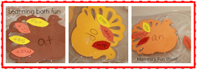 We have been doing learning games in the bath for awhile and I didn't do one last week due to the storm (Sandy) and then traveling, so last night "J" said mom when are we going to do a fun learning bath.